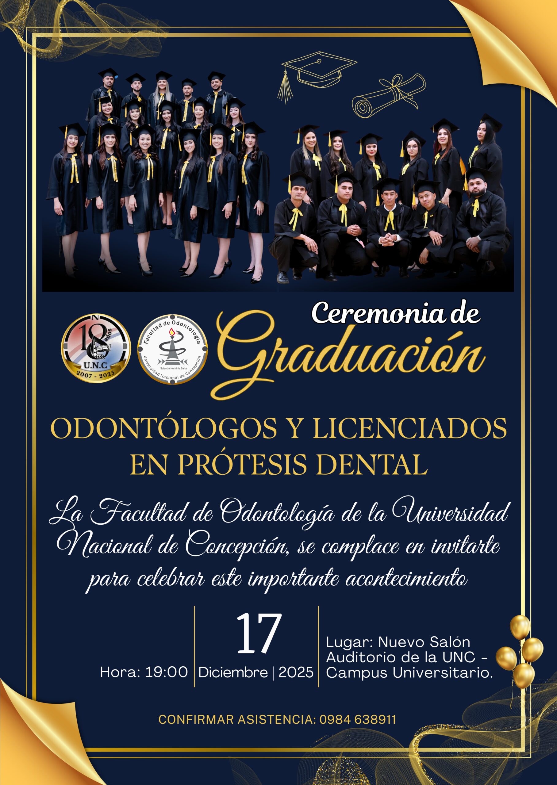 En la noche de ayer miércoles 17 de diciembre de 2025, en el salón auditorio de la UNC, la Facultad de Odontología de la Universidad Nacional de Concepción; llevó a cabo el solemne acto de graduación de nuevos Odontólogos y licenciados en prótesis Dental. El acto fue presidido por el señor rector de la UNC, […]