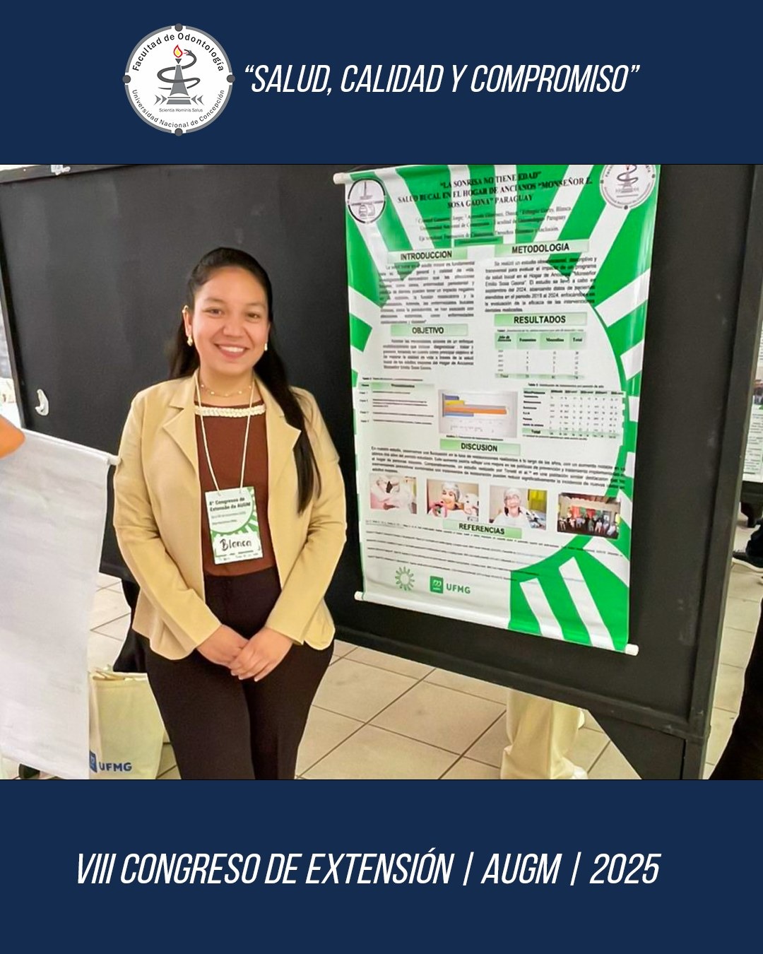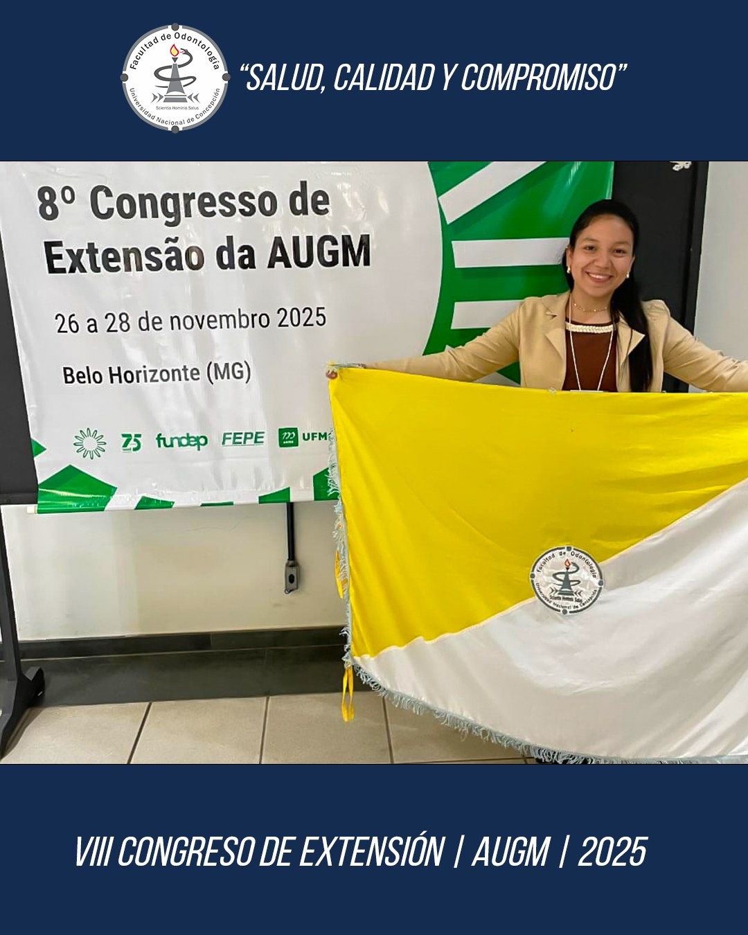 🔲La 𝗗𝗿𝗮. 𝗕𝗹𝗮𝗻𝗰𝗮 𝗘𝗰𝗵𝗮𝗴ü𝗲, coordinadora de Seguimiento a Egresados de la Facultad de Odontología de la Universidad Nacional de Concepción; 𝗹𝗹𝗲𝘃ó 𝗹𝗮 𝗿𝗲𝗽𝗿𝗲𝘀𝗲𝗻𝘁𝗮𝗰𝗶ó𝗻 𝗶𝗻𝘀𝘁𝗶𝘁𝘂𝗰𝗶𝗼𝗻𝗮𝗹 𝗮𝗻𝘁𝗲 𝗲𝗹 𝗩𝗜𝗜𝗜 𝗖𝗼𝗻𝗴𝗿𝗲𝘀𝗼 𝗱𝗲 𝗘𝘅𝘁𝗲𝗻𝘀𝗶ó𝗻 𝗨𝗻𝗶𝘃𝗲𝗿𝘀𝗶𝘁𝗮𝗿𝗶𝗮 𝗱𝗲 𝗹𝗮 𝗔𝗨𝗚𝗠 con el lema: “Redes para la Internacionalización de la Extensión Universitaria”, 𝗾𝘂𝗲 𝘁𝘂𝘃𝗼 𝗹𝘂𝗴𝗮𝗿 𝗲𝗻 𝗕𝗲𝗹𝗼 𝗛𝗼𝗿𝗶𝘇𝗼𝗻𝘁𝗲 – 𝗕𝗿𝗮𝘀𝗶𝗹; desde el 26 hasta el 28 de noviembre del año 2025.